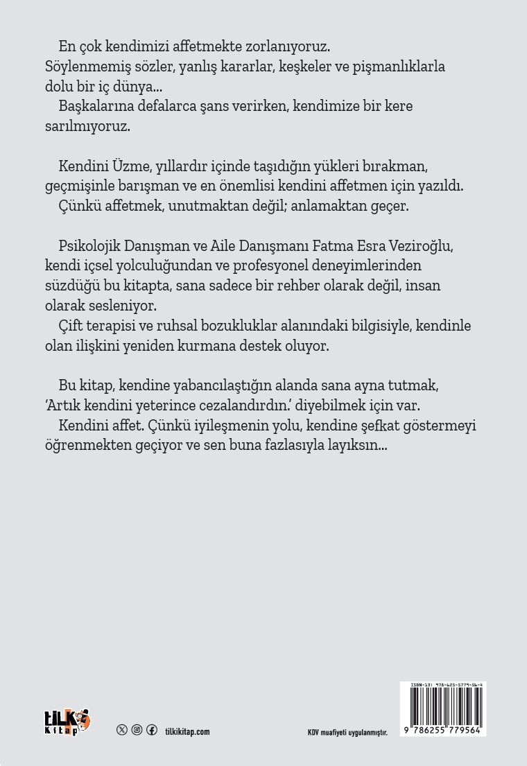 Kendini Üzme, yıllardır içinde taşıdığın yükleri bırakman, geçmişinle barışman ve en önemlisi kendini affetmen için yazıldı.