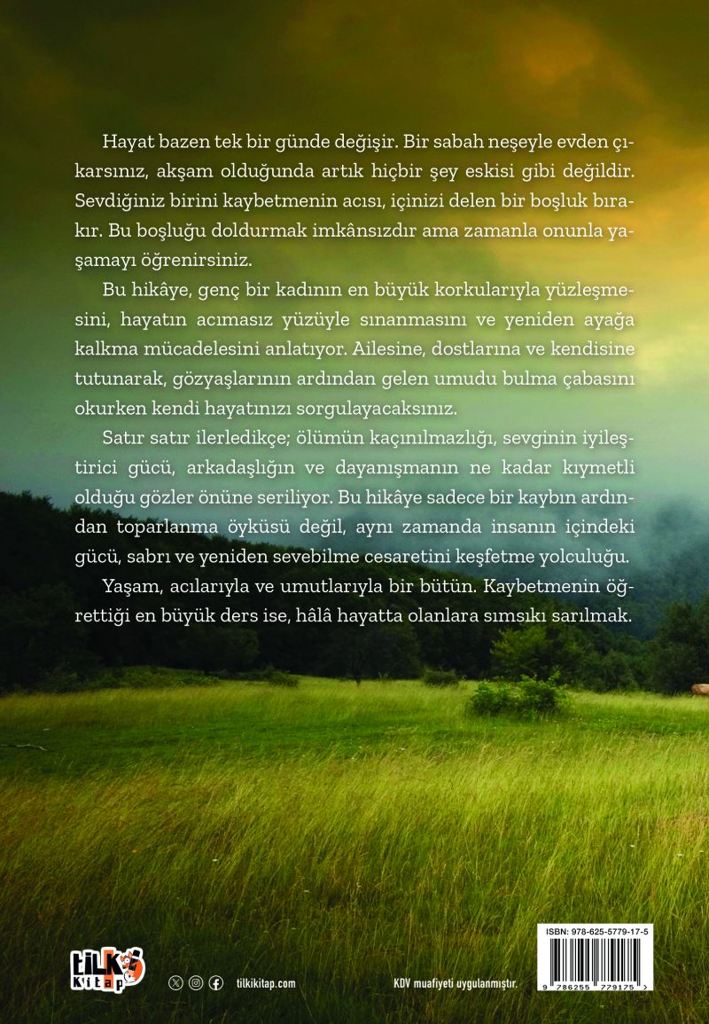 Bu hikâye, genç bir kadının en büyük korkularıyla yüzleşmesini, hayatın acımasız yüzüyle sınanmasını ve yeniden ayağa kalkma mücadelesini anlatıyor. Ailesine, dostlarına ve kendisine tutunarak, gözyaşlarının ardından gelen umudu bulma çabasını okurken kendi hayatınızı sorgulayacaksınız.
