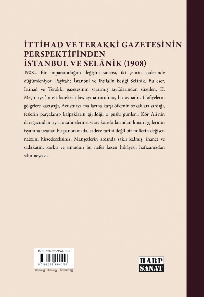 1908... Bir imparatorluğun değişim sancısı, iki şehrin kaderinde düğümleniyor: Payitaht İstanbul ve ihtilalin beşiği Selânik. Bu eser, İttihad ve Terakki gazetesinin sararmış sayfalarından süzülen, II. Meşrutiyet'in en hareketli beş ayına tutulmuş bir aynadır. Hafiyelerin gölgelere kaçıştığı, Avusturya mallarına karşı öfkenin sokakları sardığı, feslerin parçalanıp kalpakların giyildiği o puslu günler... Kör Ali’nin darağacından tiyatro sahnelerine, saray koridorlarından liman işçilerinin isyanına uzanan bu panoramada, sadece tarihi değil bir milletin değişen nabzını hissedeceksiniz. Manşetlerin ardında saklı kalmış; ihanet ve sadakatin, korku ve umudun bu nefes kesen hikâyesi, hafızanızdan silinmeyecek.