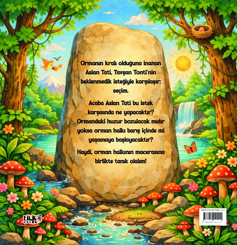 Ormanın kralı olduğuna inanan Aslan Tati, Tavşan Tonti’nin beklenmedik isteğiyle karşılaşır; seçim.
