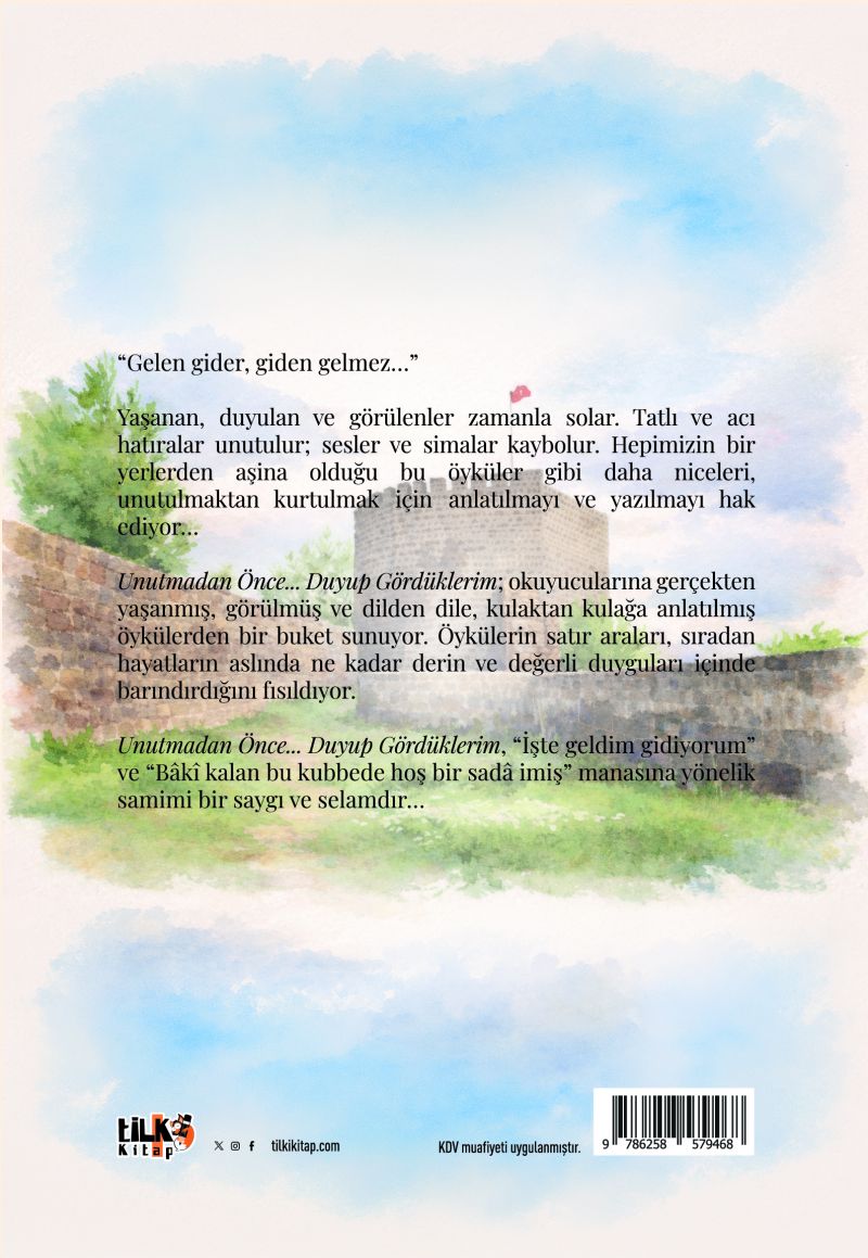 Unutmadan Önce duyup gördüklerim; okuyucularına gerçekten yaşanmış, görülmüş ve dilden dile, kulaktan kulağa anlatılmış öykülerden bir buket sunuyor. Öykülerin satır araları, sıradan hayatların aslında ne kadar derin ve değerli duyguları içinde barındırdığını fısıldıyor.