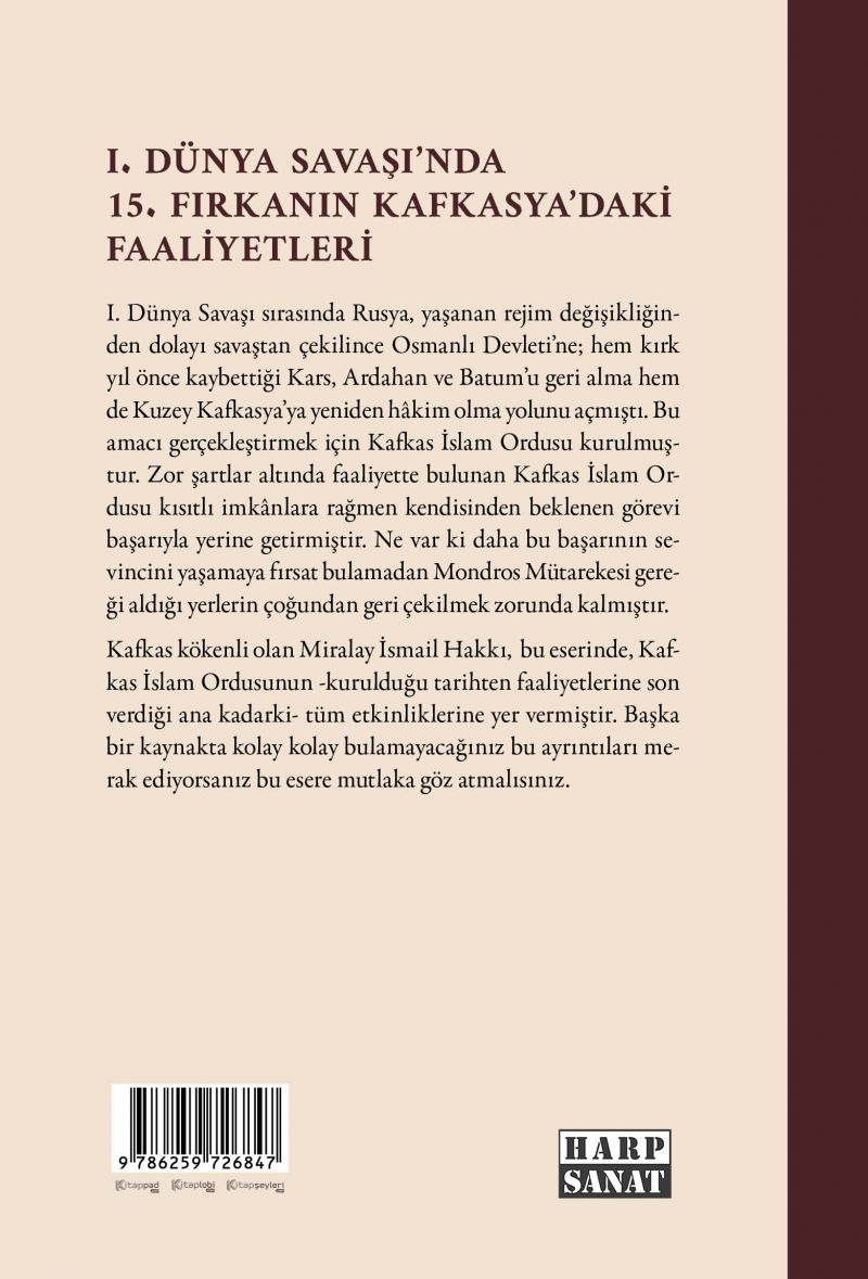 Kafkas kökenli olan Miralay İsmail Hakkı, bu eserinde, Kafkas İslam Ordusunun -kurulduğu tarihten faaliyetlerine son verdiği ana kadarki- tüm etkinliklerine yer vermiştir. Başka bir kaynakta kolay kolay bulamayacağınız bu ayrıntıları merak ediyorsanız bu esere mutlaka göz atmalısınız.