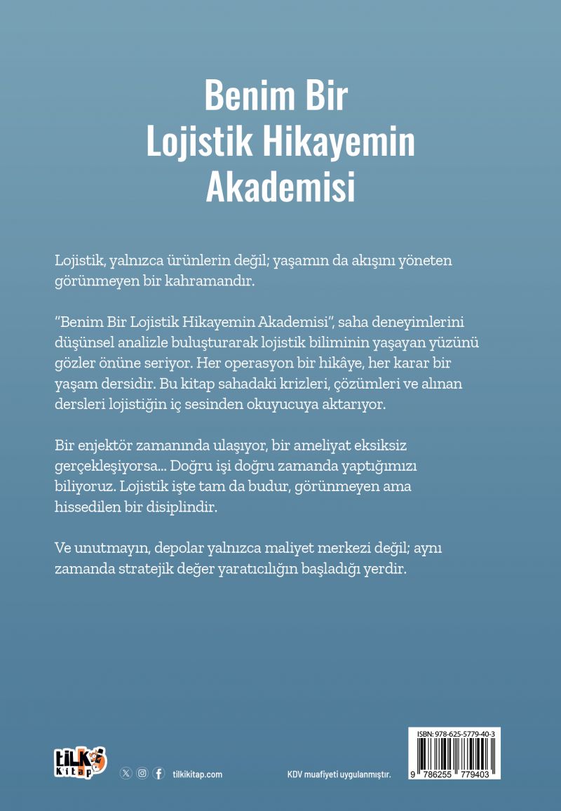 “Benim Bir Lojistik Hikâyem Akademisi”, saha deneyimlerini düşünsel analizle buluşturarak lojistik biliminin yaşayan yüzünü gözler önüne seriyor. Her operasyon bir hikâye, her karar bir yaşam dersidir. Bu kitap sahadaki krizleri, çözümleri ve alınan dersleri lojistiğin iç sesinden okuyucuya aktarıyor.