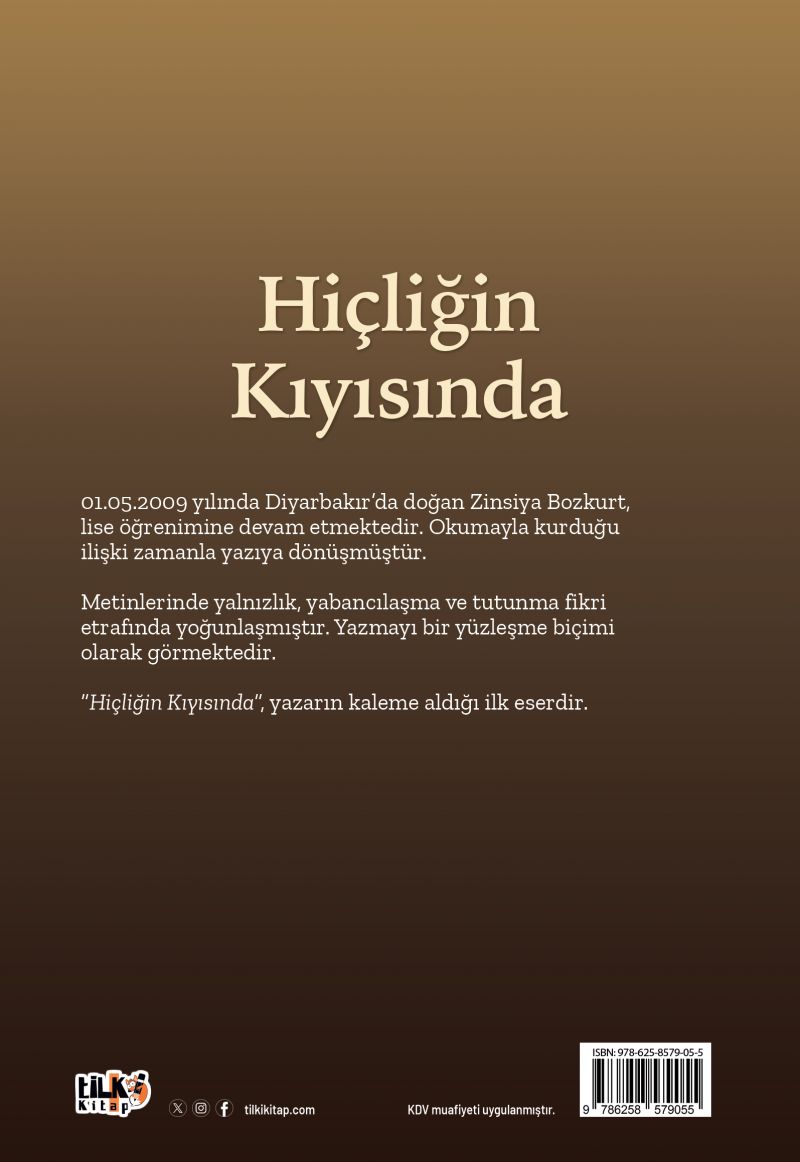 01.05.2009 yılında Diyarbakır'da doğan Zinsiya Bozkurt, lise öğrenimine devam etmektedir. Okumayla kurduğu ilişki zamanla yazıya dönüşmüştür.